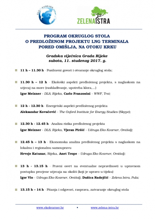 OKRUGLI STOL O PREDLOŽENOM PROJEKTU LNG TERMINALA PORED OMIŠ LJA, NA OTOKU KRKU